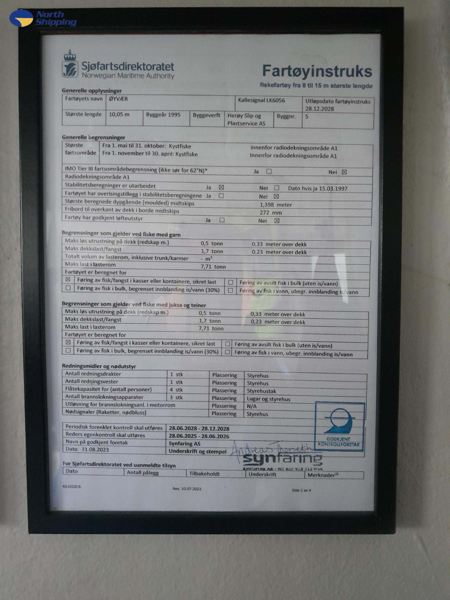 Fartsområde: Fartøyinstruks for Kystfiske